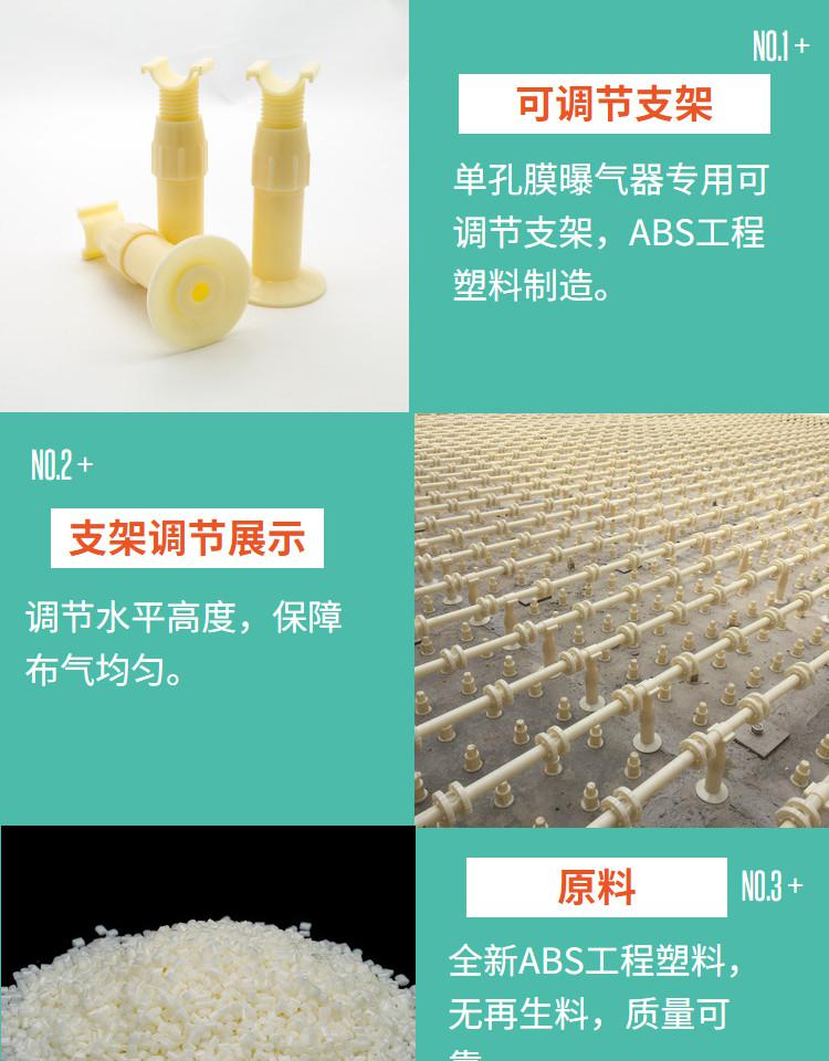 5、曝氣管網(wǎng)在設(shè)計過程中必須按照0.5-0.8米左右的距離考慮安裝可調(diào)節(jié)固定支架。