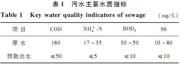 本實(shí)驗所用原水為三亞市紅沙污水處理廠的超細(xì)格柵出水,主要水質(zhì)指標(biāo)和預(yù)期出水指標(biāo)如表1所示。